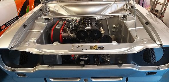 Got to admit I like the silver and black combo. She will be a cracker when she is done. Garage with a few Mk 1s in the background, very nice